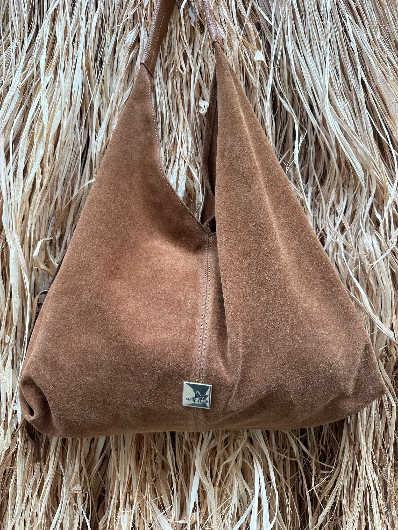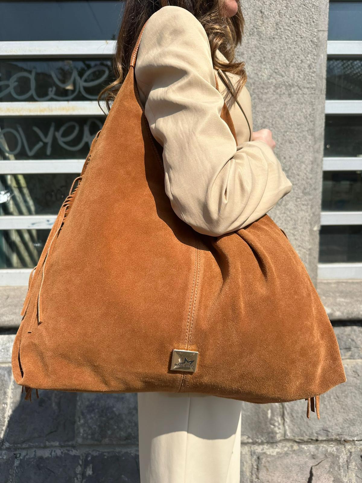 MARC ELLIS Borsa a spalla REANNA M CM FR in suede con placchetta logo in metallo. Dotata di sacca interna estraibile con tracolla.