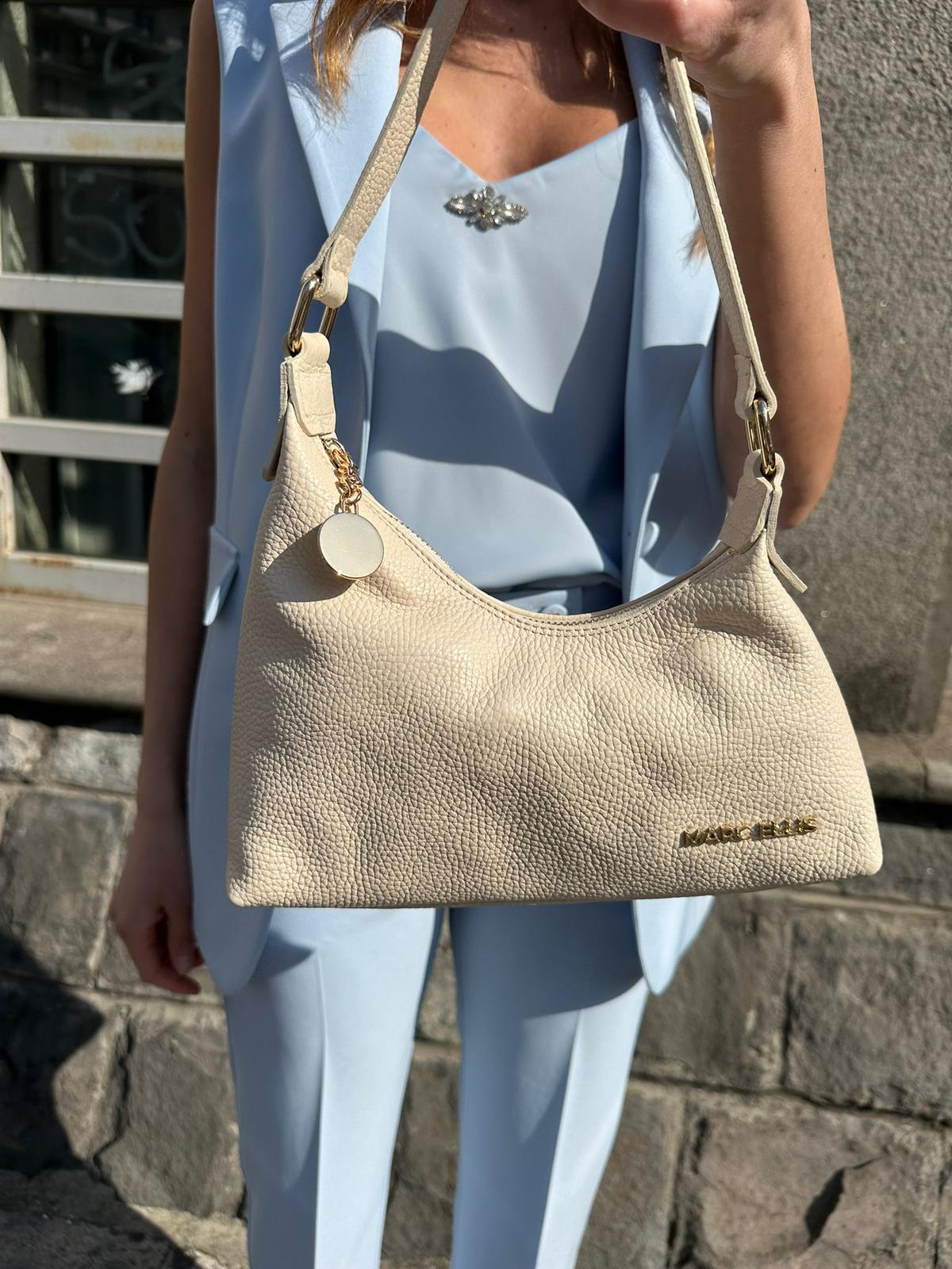 MARC ELLIS Borsa a spalla WYNN SMALL DO LT in pelle dollaro con spallaccio fisso, tracolla rimovibile e lettering logo in metallo.